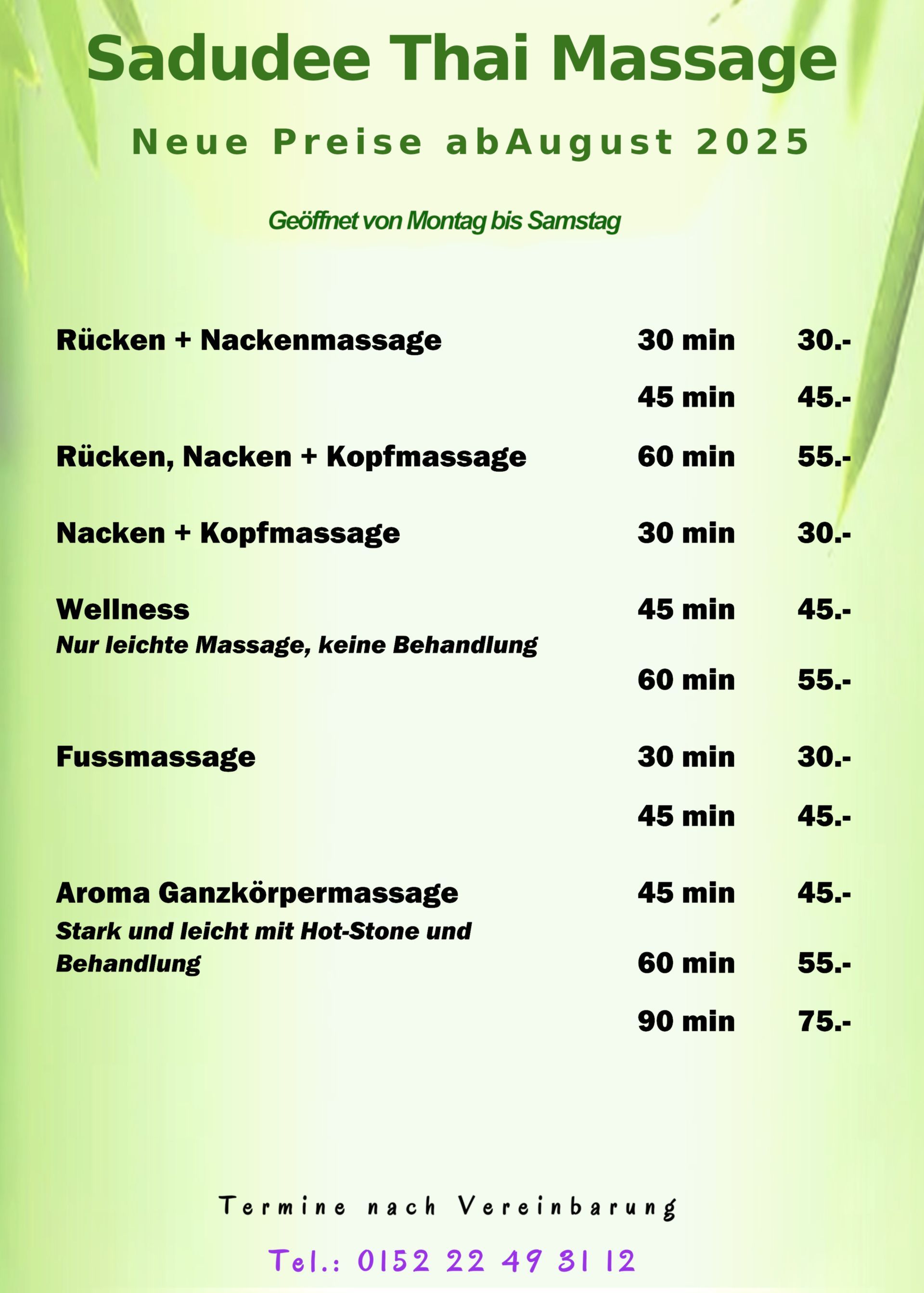 Schön, dass Sie zu uns gefunden haben. Ganz gleich ob Sie an chronischen Beschwerden leiden oder an einem akuten Problem: In unserer Praxis erhalten Sie eine Professionelle Thai-Massage, die auf Ihre Bedürfnisse abgestimmt ist!